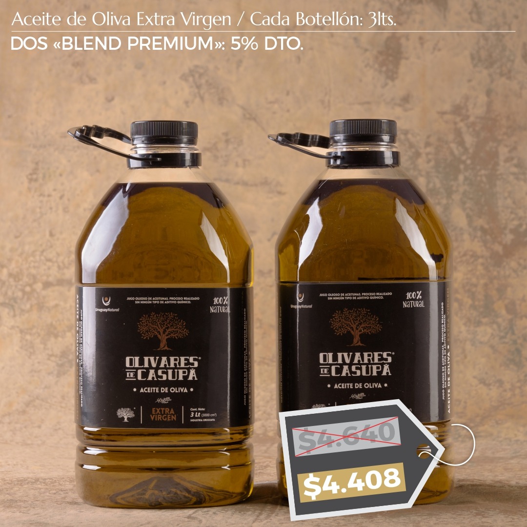 ¡PROMOCIÓN! Aceite de Oliva Extra Virgen «Blend Premium» Dto. 5%. Dos Botellones 3lts.